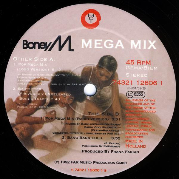 Track A2 listed as only "Babysitter", but this is not the original '83 version from Boney M. - Jambo Hakuna Matata (No Problems) (Long Version) / I Need A Babysitter (Babysitter) / African Moon
