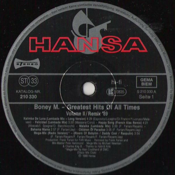 - Remix – Frank Farian, Mix-Master Pete Hammond* (tracks: A1 to A6, B1 to B6)