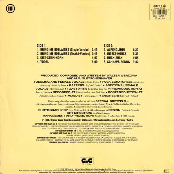 - Producer, Composed By – M.M. Gletschermayer*, Walter Werzowa