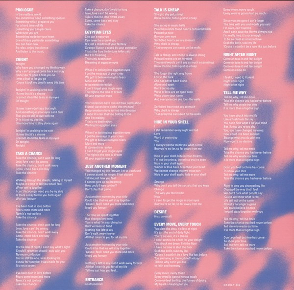 This new edition, which you are now holding in your hands, has been professionally remastered from the original digital masters to get the best sound for LP and CD editions. As you may know, this is the first vinyl pressing of "Back", so it`s not only a nice listening experience, but also a good investment. Expanded CD edition contains two previously unreleased tracks: an unreleased demo for "2Night" recorded in the late 80s, and non-album track "Night Falls In Shanghai", recorded during "Back!" sessions. CD also contains remixed single versions for "2Night" and "Every Move Every Touch".