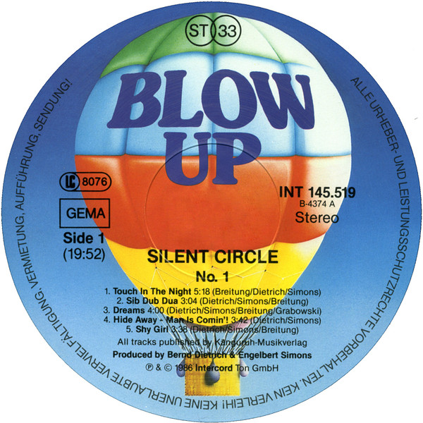 2. Second edition with Hype-print at right top corner: Including TOP-HITS "Touch In The Night", "Stop The Rain": Silent Circle - № 1