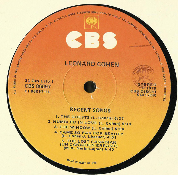 - Written-By – L. Cohen* (tracks: A1 to A3, B1 to B5)