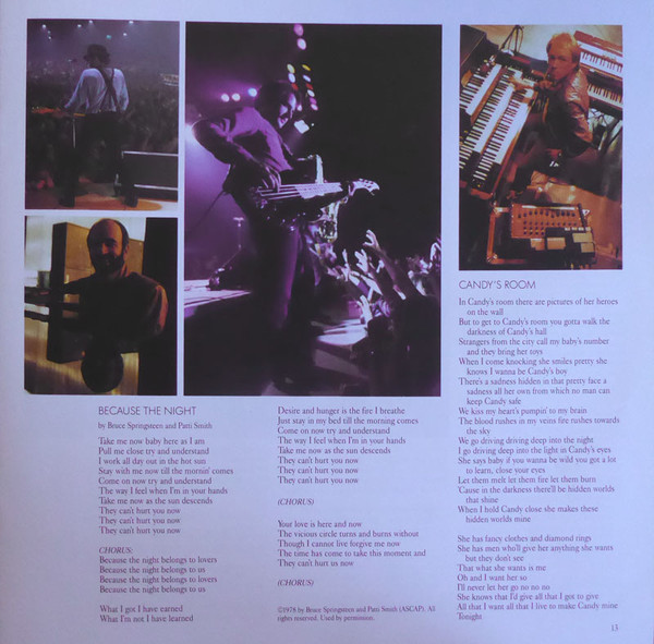 "Because The Night" © 1978 by Bruce Springsteen and Patti Smith (ASCAP)