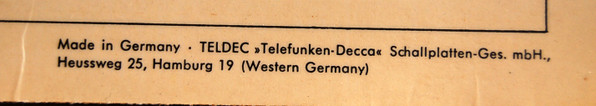- Record Company – TELDEC »Telefunken-Decca« Schallplatten GmbH