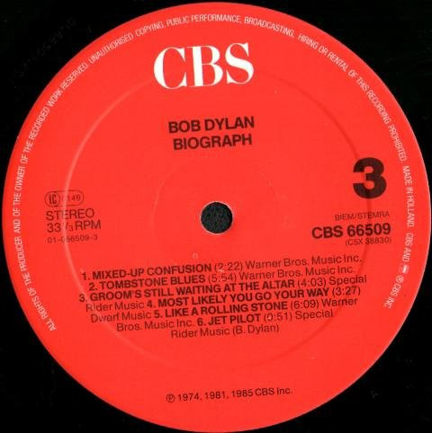 - Songwriter [Songs Written By] – Bob Dylan (tracks: A1, A3 to J5)