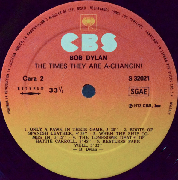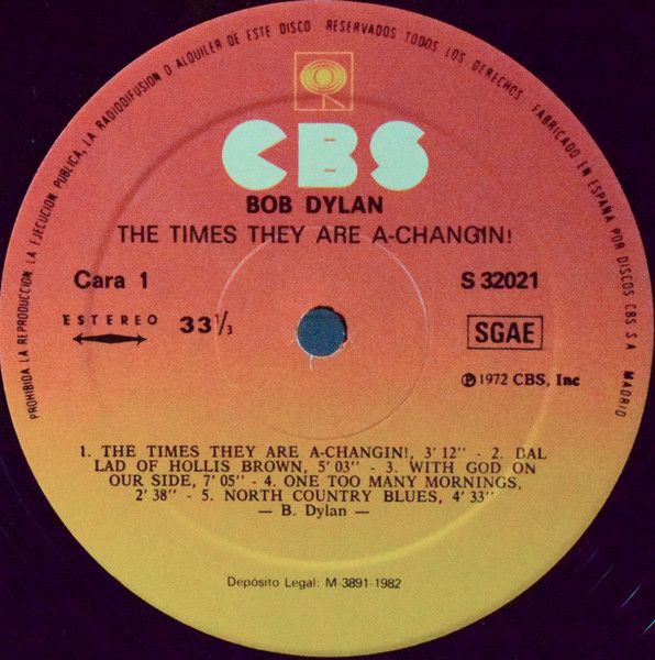 Incorrectly titled "THE TIMES THEY ARE A-CHANGIN!" on labels (same as the song title)
