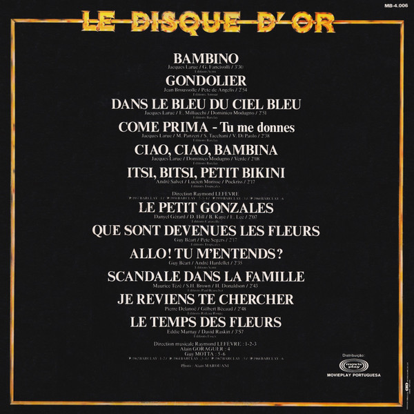 - Accompanied By – Alain Goraguer (tracks: B4), Guy Motta (tracks: B5, B6), Raymond Lefèvre (tracks: A1 to A6, B1, B2, B3)