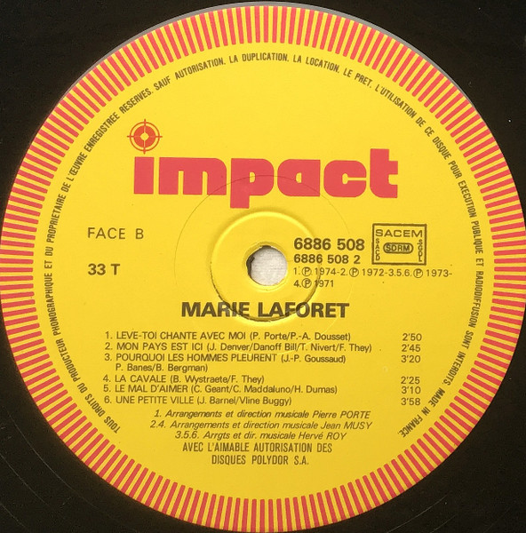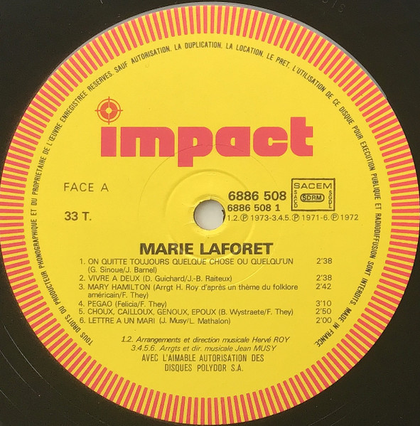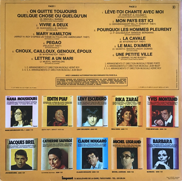 - Arranged By, Music Director [Direction Musicale] – Hervé Roy (tracks: A1, A2, B3, B5, B6), Jean Musy (tracks: A3 to A6, B2, B4), Pierre Porte (tracks: B1)