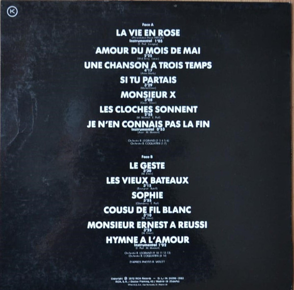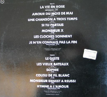 | B6 | Hymne A L'Amour (Instrumental) | 1:02 |