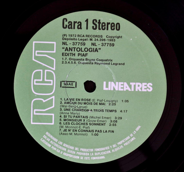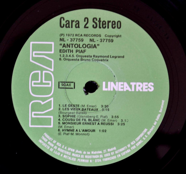 Made in Spain from RCA master recording
