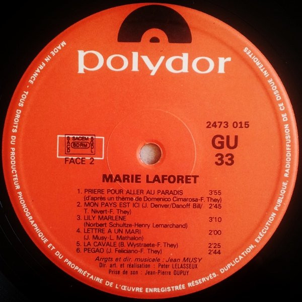 - Arranged By, Conductor – Bernard Wystraëte (tracks: B5, B6), Jean Musy (tracks: A1 to B4)