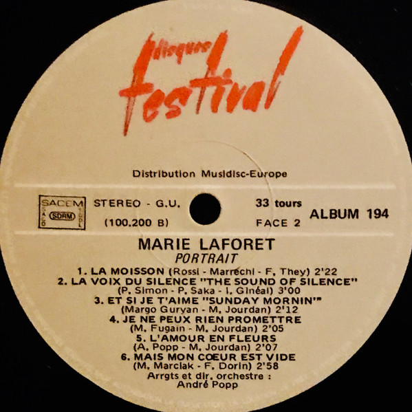 Different rear sleeve to Marie Laforêt - Portrait