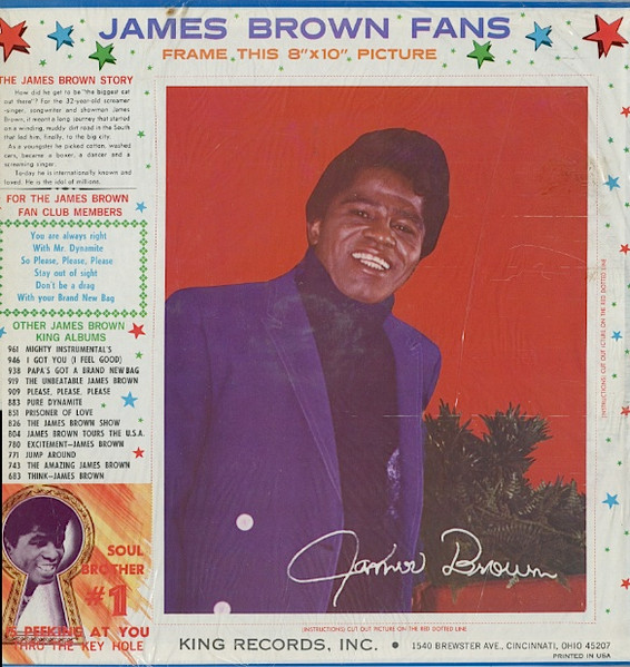 Cover has embossed lettering around the edges of JAMES BROWN with the photos inside of it on lower 2/3 of cover, unlike this non-embossed cover stereo version of James Brown - It's A Man's Man's World: Soul Brother #1.