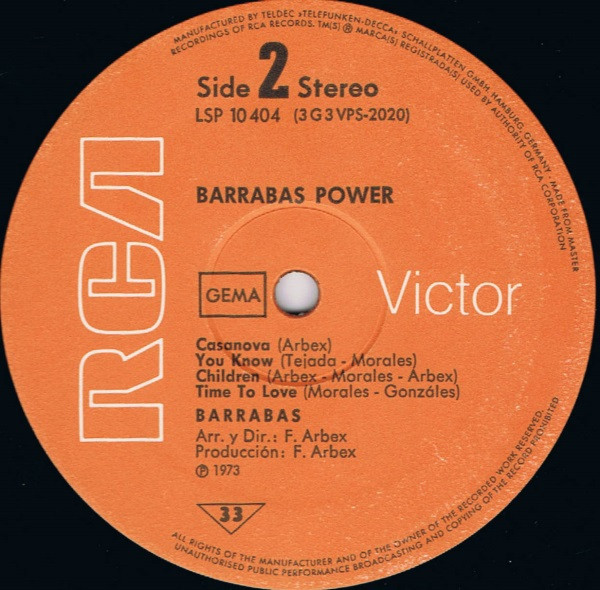 The mispress of the release can be found here "Barrabas - Power"