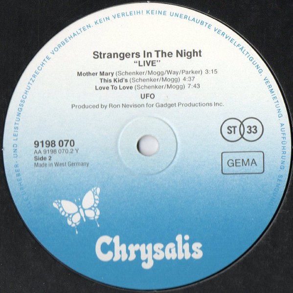 There is a quite similar UFO (5) - Strangers In The Night release WITH a stamped PRS logo on the right bottom of the back cover