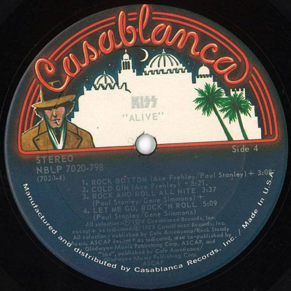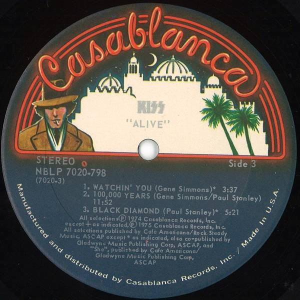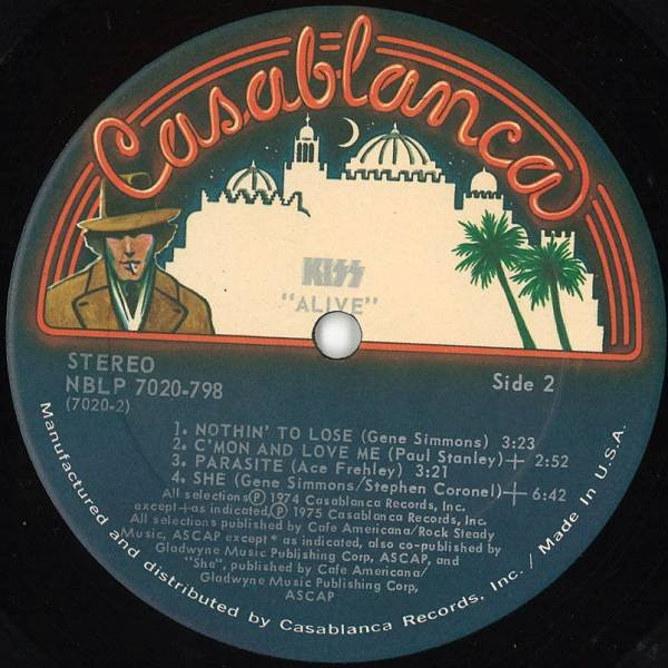 "Manufactured and distributed by Casablanca Records, Inc. / Made in U.S.A." along label perimeters.