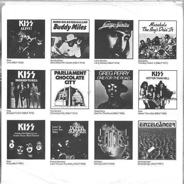 The band's previous albums with their catalog numbers are pictured on the right inner gatefold panel.