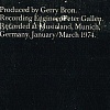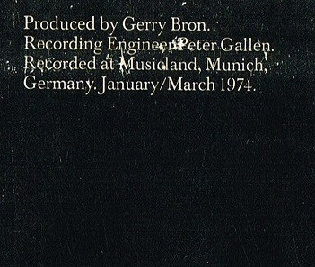 Recorded at Musicland, Munich, Germany. January/March 1974.