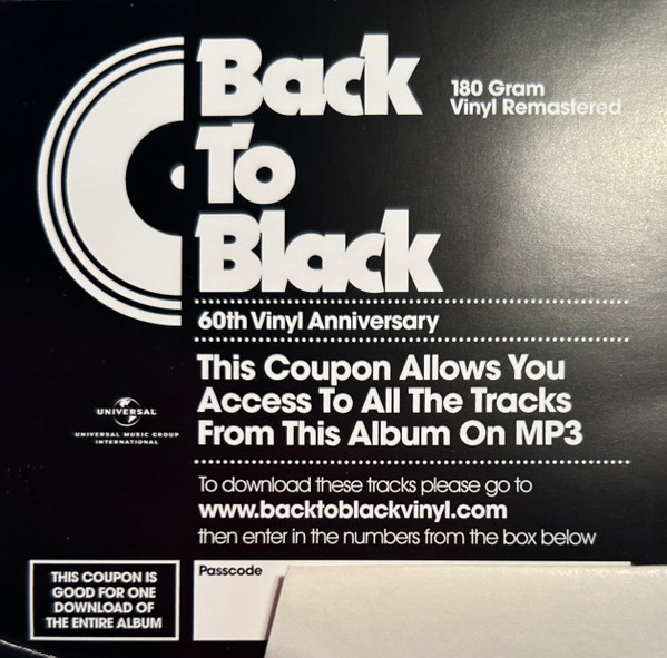 Includes A Voucher To Download MP3 version Of The Album and generally identified with a "Back To Black" logo sticker on shrink-wrap. 180 Gram Vinyl Remastered