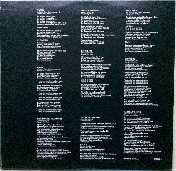 Released with printed inner lyric sleeve.