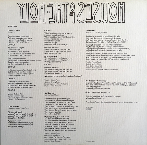 - Written-By – Page*, Bonham* (tracks: A4, B2, B4), Jones* (tracks: A4, B2 to B4), Plant*