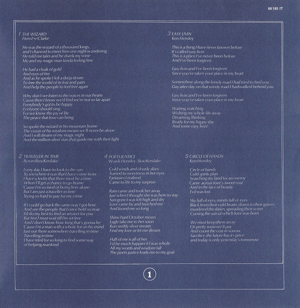 Gatefold cover includes a lyric sheet insert which has the cat# 86 185 IT printed on it.