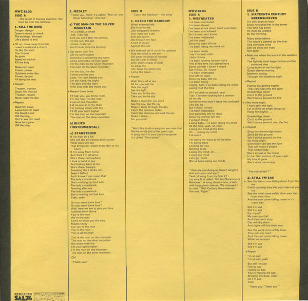 All songs published by Eule Music Inc./Armchair Music-BMI, except "Mistreated", which is published by Purple (USA) Music, Inc.-BMI and "Still I'm Sad", which is published by Glennwood Music Corp.-Ascap. A portion of the M.G.M. Soundtrack Recording of "The Wizard Of Oz" used by permission of Metro-Goldwyn-Mayer Inc. and M.G.M. Records Inc. introducing side 1, "Over The Rainbow" (Harburg-Arlen) Leo Feist, Inc.-ASCAP.