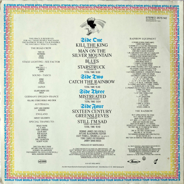 - Written-By – Powell* (tracks: A2), Coverdale* (tracks: C), E.Y. Harburg (tracks: A1), H. Arlen* (tracks: A1), McCarty* (tracks: D2), Samwell-Smith* (tracks: D2), Blackmore* (tracks: A2 To D1), Dio* (tracks: A2, A3A, A3C, A3E, B, D1)