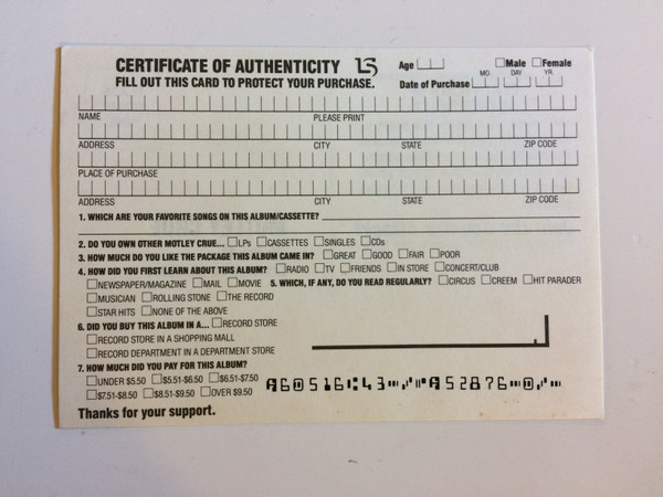 - Backing Vocals – Mick Mars, Nikki Sixx, Tommy Lee, Vince Neil