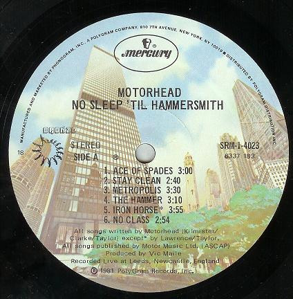 This release has a slightly different cover, with the word "LIVE" in red letters under the title. Unlike No Sleep 'Til Hammersmith, which also features "LIVE" on the front, this pressing has a different label layout.
