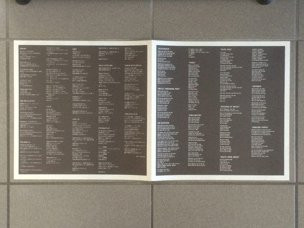 Fold-out lyric sheet with English and Japanese lyrics and printed insert.