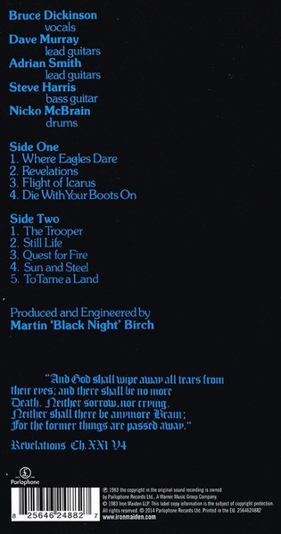 - Design Concept [Sleeve], Design [Sleeve] – Derek Riggs, Iron Maiden, Rod Smallwood