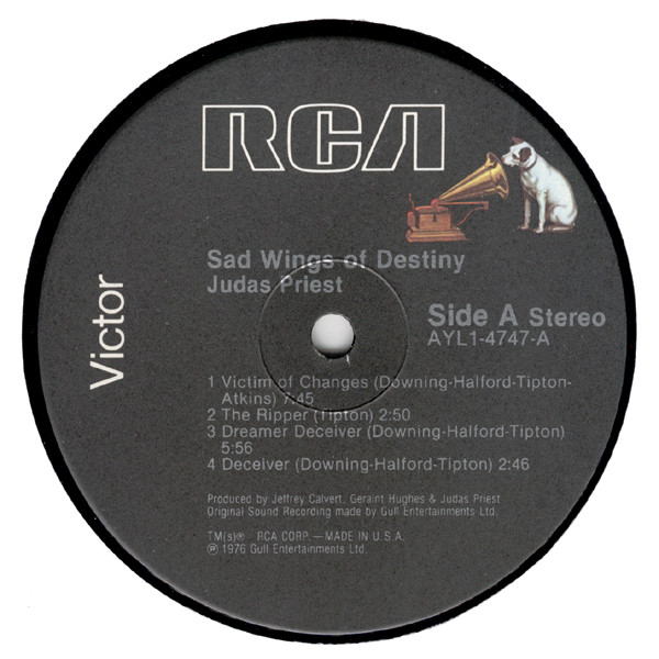 Tracklist for Sides A and B are transposed on the sleeve versus the disc. Side A of the disc starts with "Victim of Changes", the sleeve lists "Prelude" as the first track. The listing is according to the disc, not the sleeve.