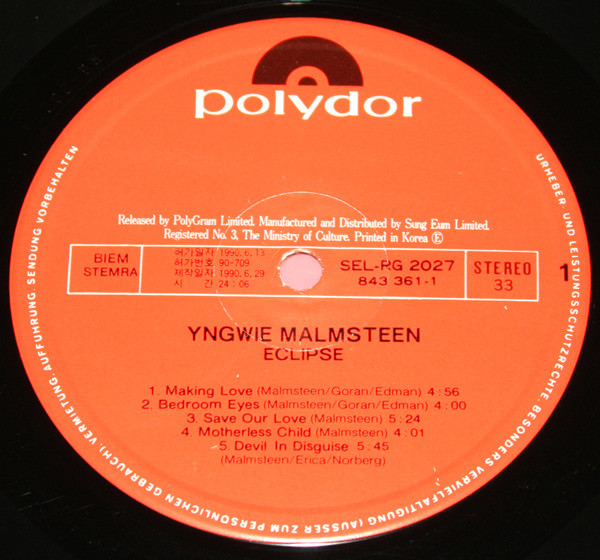 Released by PolyGram Limited. Manufactured and Distributed by Sung Eum Limited.