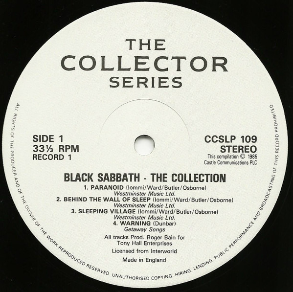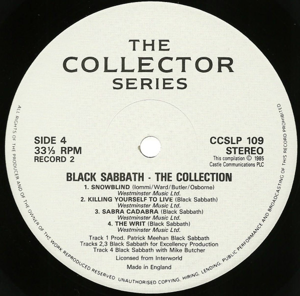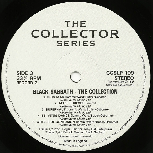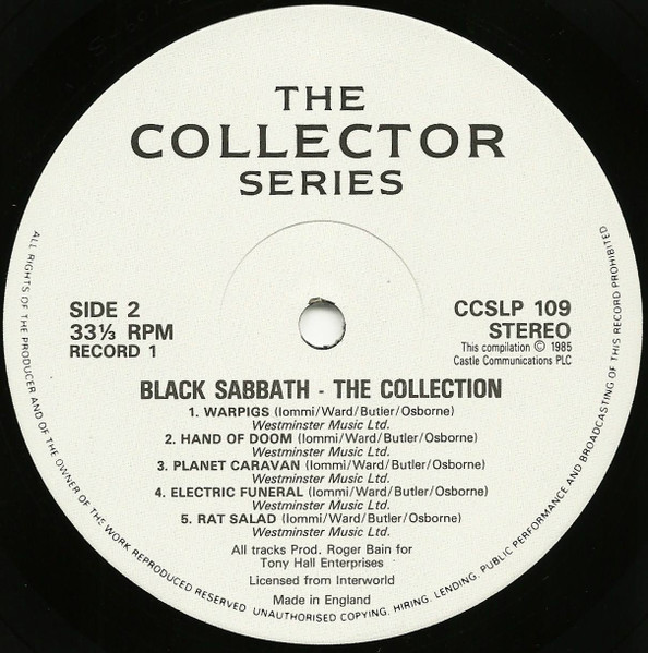 Rodger Bain is spelt "Roger" on both sleeve and labels, Ozzy Osbourne "Osborne" on the labels.