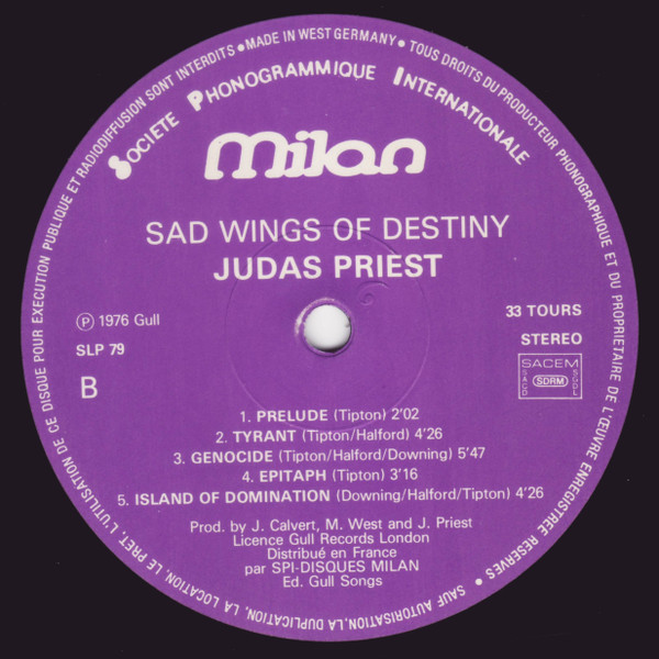 Labels are slightly different than Sad Wings Of Destiny (black letters on the French one, and white letters on the German).