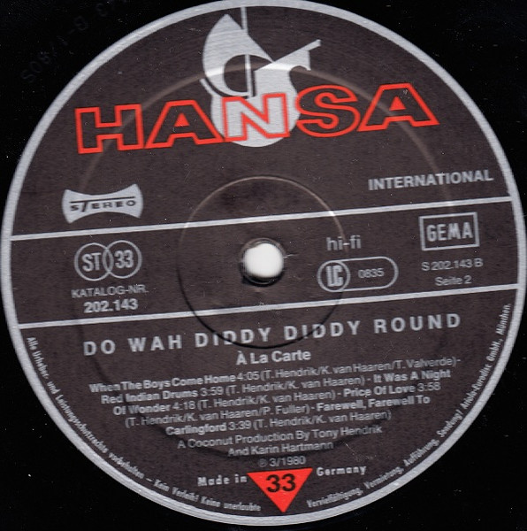 <a href="http://www.discogs.com/%C3%80-La-Carte-Do-Wah-Diddy-Diddy-Round/release/2234813">extra track "Ring Me Honey"</a>