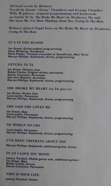 - Written-By – Chandler* (tracks: A1 to A4, A6 to B5), Chambers* (tracks: A1 to A4, A6 to B5), Helms* (tracks: A1 to A4, A6 to B5), Henshall* (tracks: A1 to A4, A6 to B5)