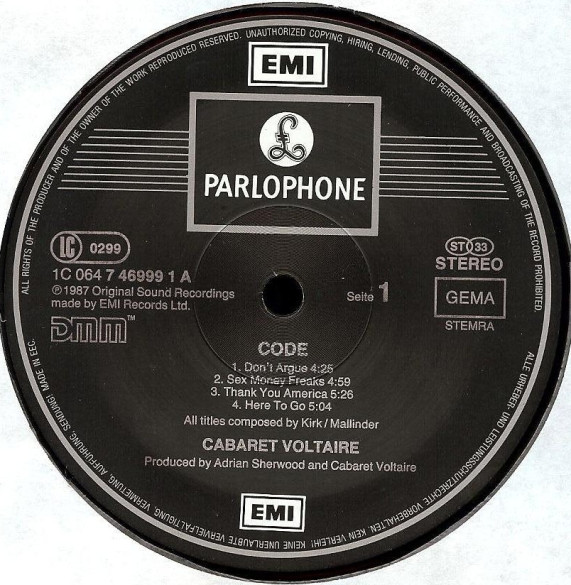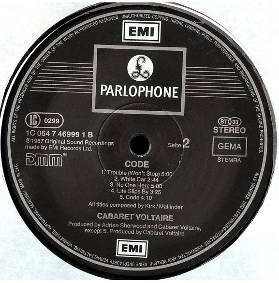 Spine string: Cabaret Voltaire: Code Parlophone 74 6999 1