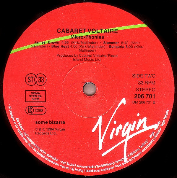 Printed inner sleeve with "some bizarre" next to Virgin logo. Same also printed on labels.