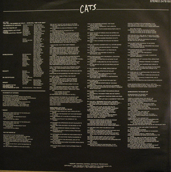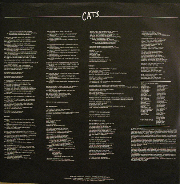 (P) 1981 The Really Useful Company Limited/Faber Music Limited