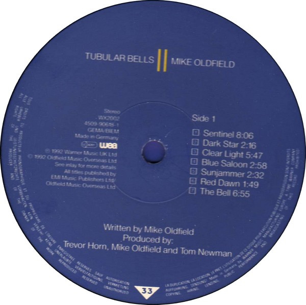 ℗ 1992 Warner Music UK Ltd © 1992 Oldfield Music Overseas Ltd. The copyright in this sound recording is owned by Warner Music UK Ltd and in the artwork by Oldfield Music Overseas Ltd. under exclusive licence to Warner Music UK Ltd. Manufactured In Germany by Warner Music Manufacturing Europe.