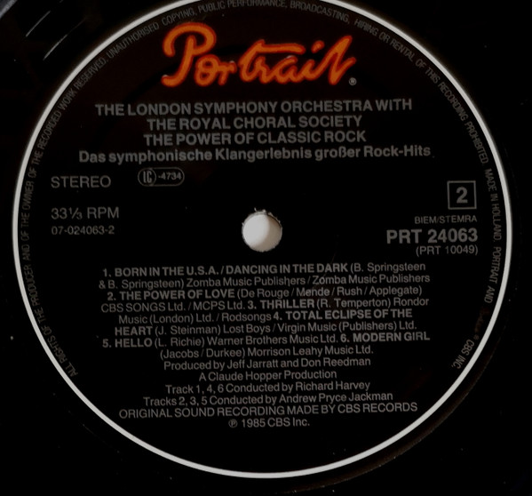 © 1985 CBS Inc. ℗ 1985 CBS Inc./ [...] /Printed in Holland