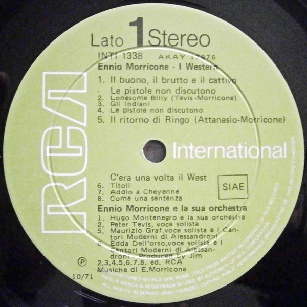 - Orchestra – Hugo Montenegro E La Sua Orchestra* (tracks: A1), Ennio Morricone E La Sua Orchestra* (tracks: A2 to A8, B1 to B9)