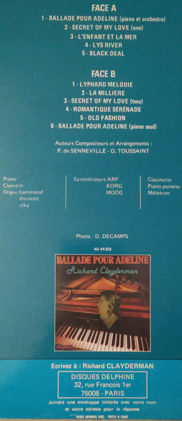 - Piano, Harpsichord [Clavecin], Organ [Orgue Hammond, Éminent, Elka], Synthesizer [Synthétiseurs Arp, Korg, Moog], Clavinet [Clavinette], Piano [Piano Punaise], Mellotron [Mélotron] – Richard Clayderman