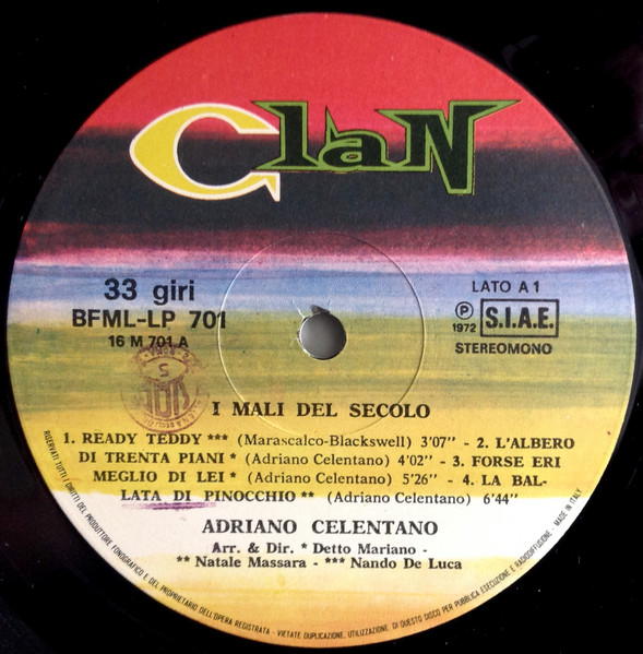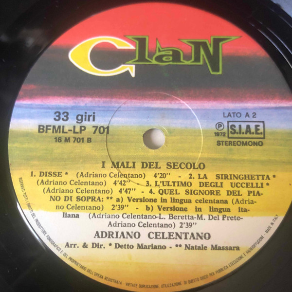 On spine: I MALI DEL SECOLO - ADRIANO CELENTANO BF-ML-LP 701