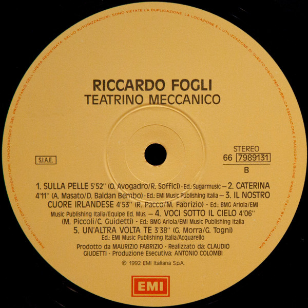 - Phonographic Copyright ℗ – EMI Italiana S.p.A.