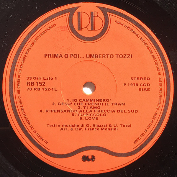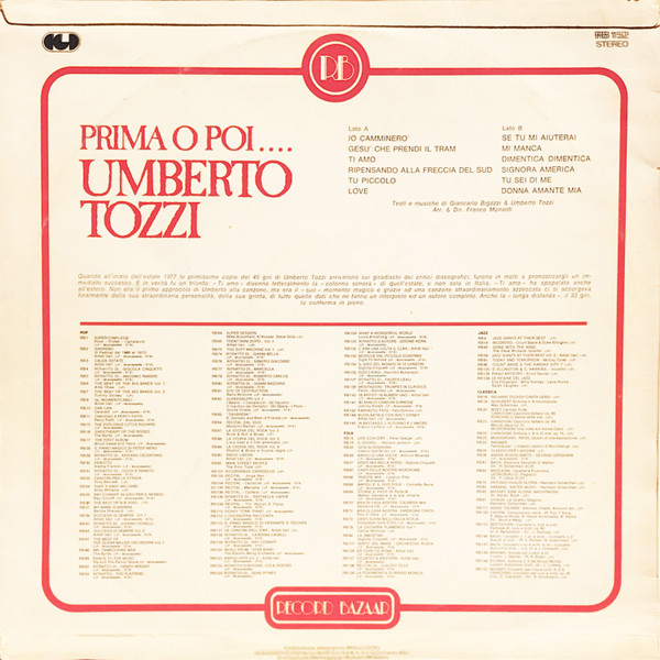 Fabbricato e stampato in Milano 1978 dalla CGD - Comp. Gen. del Disco S.p.A. Via Quintiliano, 40