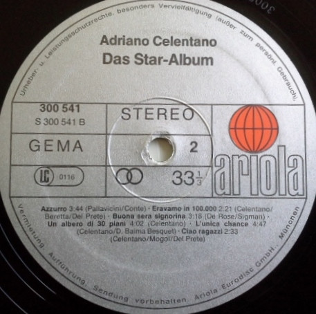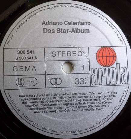including recipe for 'Spaghetti à la Celentano' on inner sleeves
