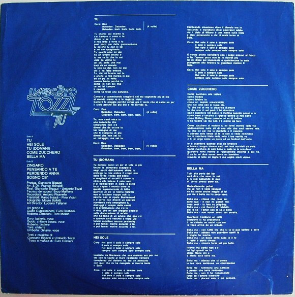 - Written-By – Giancarlo Bigazzi (tracks: A1 to B3), Umberto Tozzi (tracks: A1 to B3)